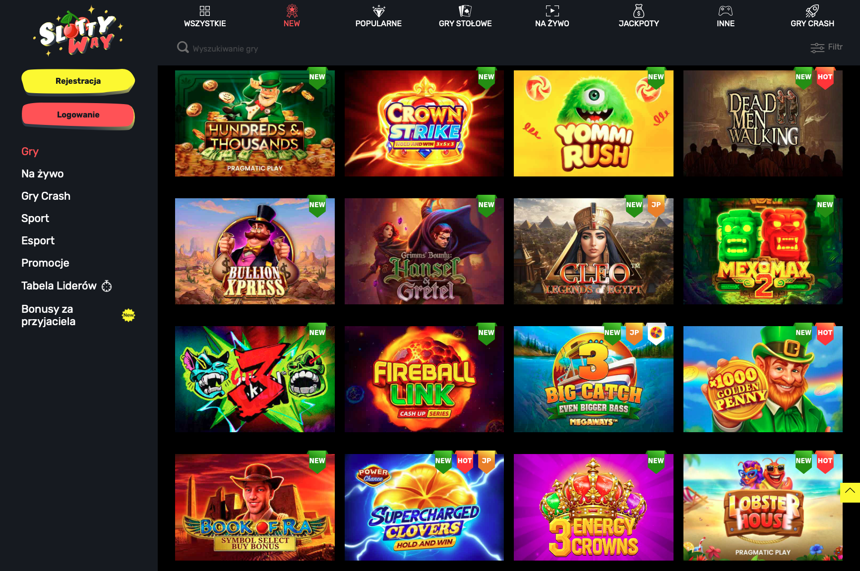 Slottyway Casino dysponuje jedną z najbardziej rozbudowanych bibliotek gier wśród kasyn licencjonowanych przez Curaçao. Gracze mają dostęp do ponad 7000 automatów pochodzących od blisko 190 dostawców. Oferta obejmuje klasyczne sloty, automaty wideo, gry z jackpotem, a także nowoczesne megaways i gry z funkcją „buy bonus”.